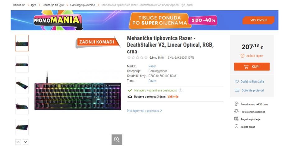 Kupljena je u 1. mjesecu 2024. godine preko stranice ozone.hr. Tipkovnica je u odličnom stanju osim tipke C (vidi se na slikama), radi sve normalno, samo se boja malo ogulila.