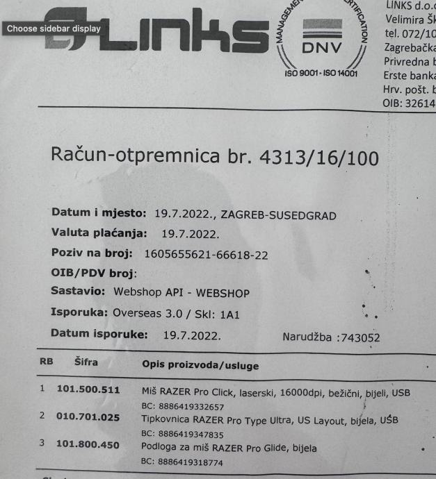 Prodajem mis Razer Pro Click, vrlo malo koristen, u odlicnom stanju. Kupljen u Linksu (garancija istekla). Vise na: https://www.razer.com/mena-en/productivity/razer-pro-click?srsltid=AfmBOorbc1rmlZFR7EnhJRyCUCJUecr6k11tPdPf4ZkhHzID6DDY3nZ4