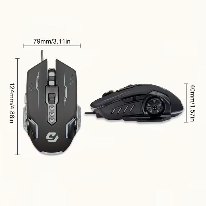 RGB igraći miš s žičanim USB-om, ergonomskim dizajnom za dešnjake