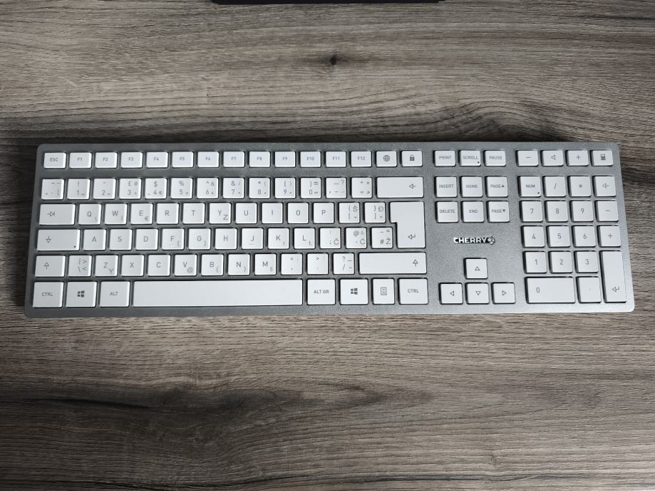 Prodajem Cherry DW 9100 Slim bežičnu tipkovnicu. Radi se o tankom dizajnu s punim brojem tipki uključujući numerički pad. Tipkovnica je bijele boje sa sivim detaljima. Cherry DW 9100 Slim nudi kvalitetnu izradu i udobnost pri tipkanju, a bežična povezivost omogućuje uredan radni prostor bez kabela.