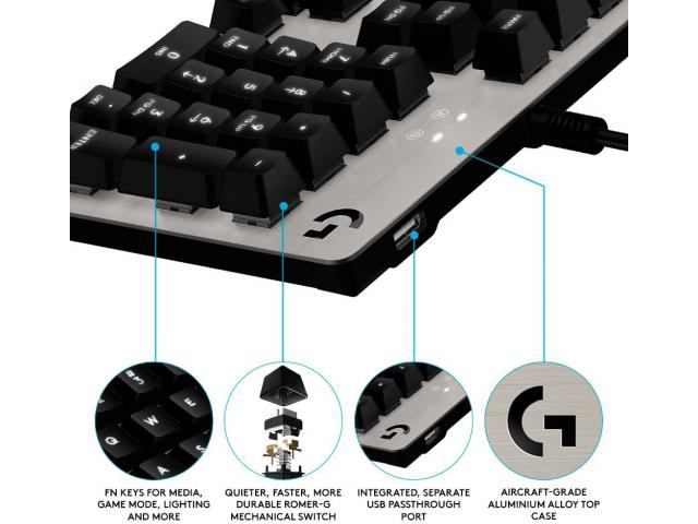 Tipkovnica LOGITECH G413 Gaming, mehanička, žična, USB, srebrna