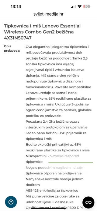 Prodajem novo. Mis i tipkovnica bezicni. Cijena 55€