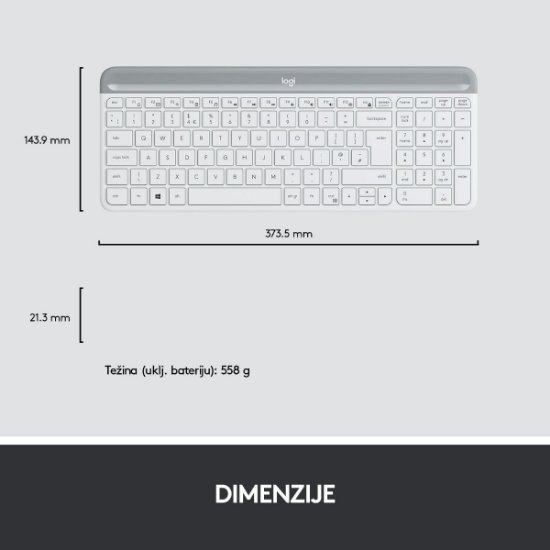 Tipkovnica + miš LOGITECH MK470 Slim Wireless, bežična, bijela