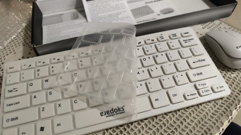 Bežična mini tipkovnica i miš u originalnom pakiranju. Komplet dolazi s 2.4GHz bežičnom tehnologijom i elegantnim, ultra tankim dizajnom. Idealno za sve koji traže praktično i kompaktno rješenje za rad na računalu. Tanka silikonska zaštita za tipkovnicu da se ne prljaju tipke.