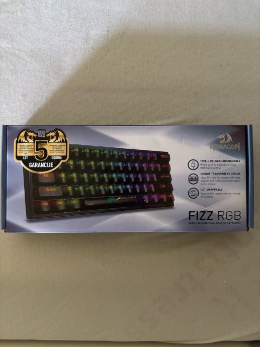 Tipkovnica Redragon Fizz K617, žičana, gaming, mehanička, US Layout, RGB, TKL, crna, dobro ocuvana, jako ugodna za rukovanje i efektna zbog svjetla.