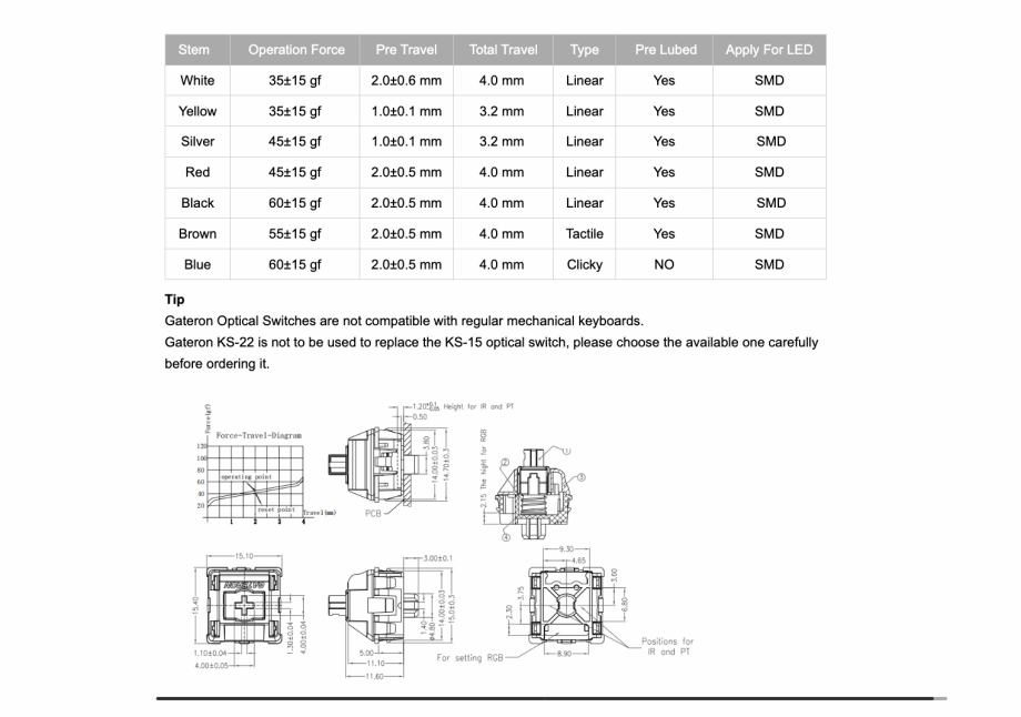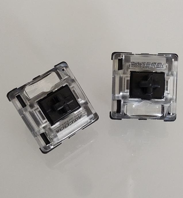 Stock switchevi su zamjenjeni s Gateron KS22 Black i KS22 Brown prekidačima.
