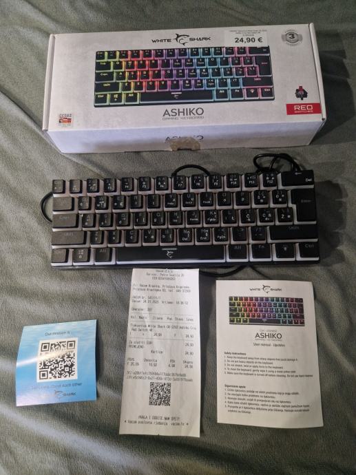 Prodajem White Shark Ashiko gaming tipkovnicu s RGB osvjetljenjem. Tipkovnica dolazi u originalnoj kutiji sa svom dokumentacijom i računom. Radi se o kompaktnom modelu s mehaničkim switchevima i crvenim stabilizatorima. RGB rasvjeta omogućuje prilagodbu boja po želji. Tipkovnica je potpuno funkcionalna, svi tasteri rade besprijekorno. Malo korištena jer je kupljena nova.