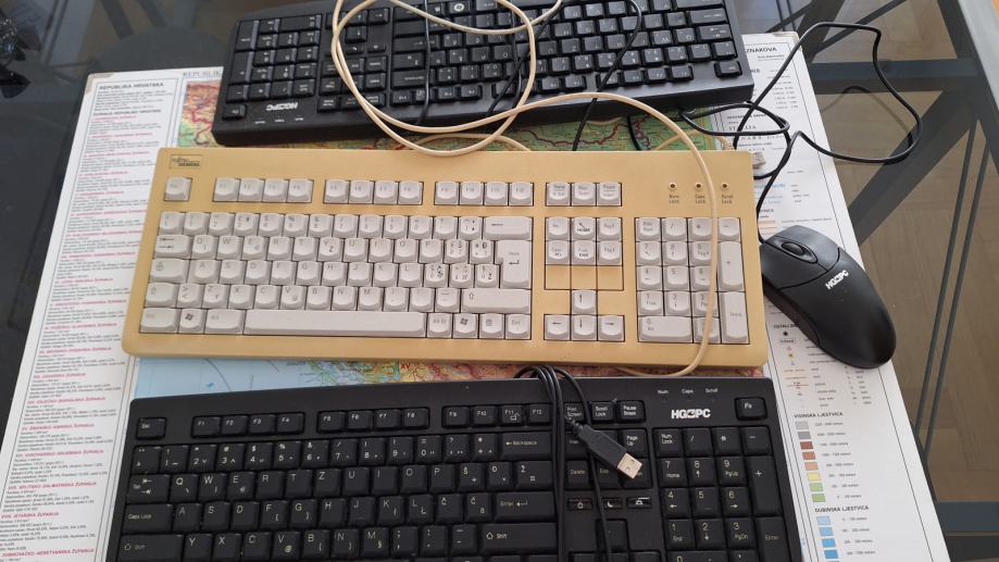 Tri tipkovnice potpuno ispravne, uz svaku tipkovnicu miš.