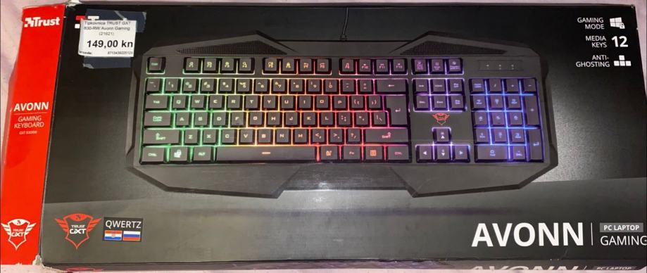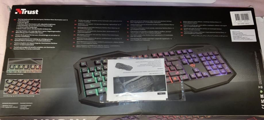 Svijetleca tipkovnica za igranje igara. Osvjetljenje s efektom vala duginih boja i 12 multimedijskih tipki. Dolazi s originalnom kutijom.