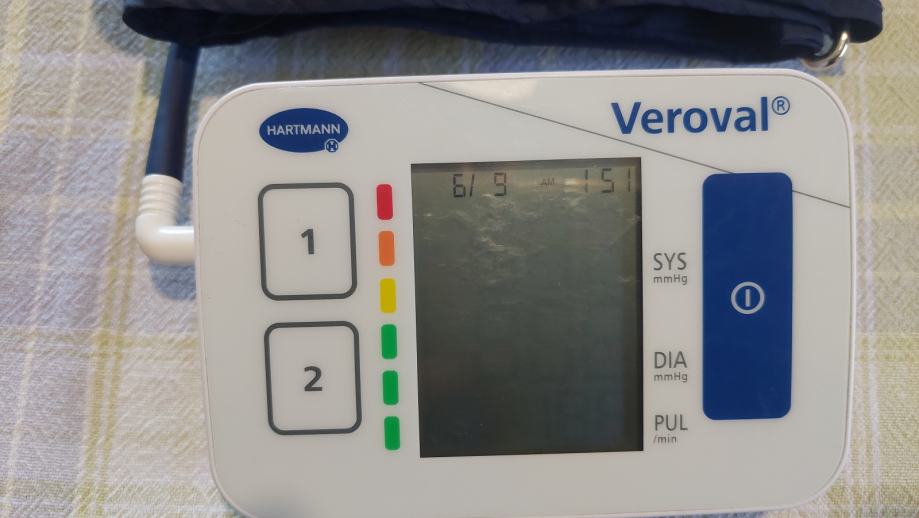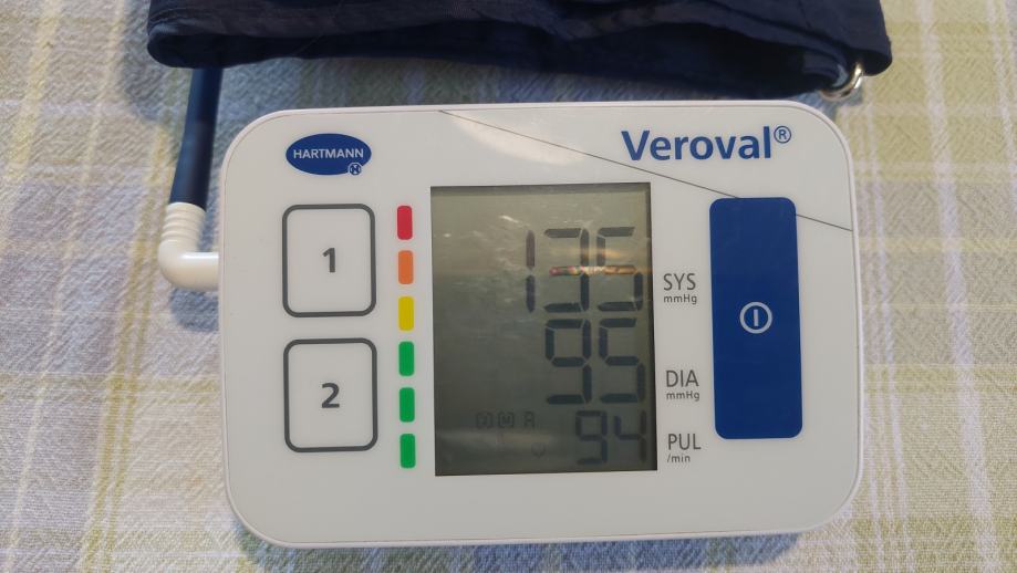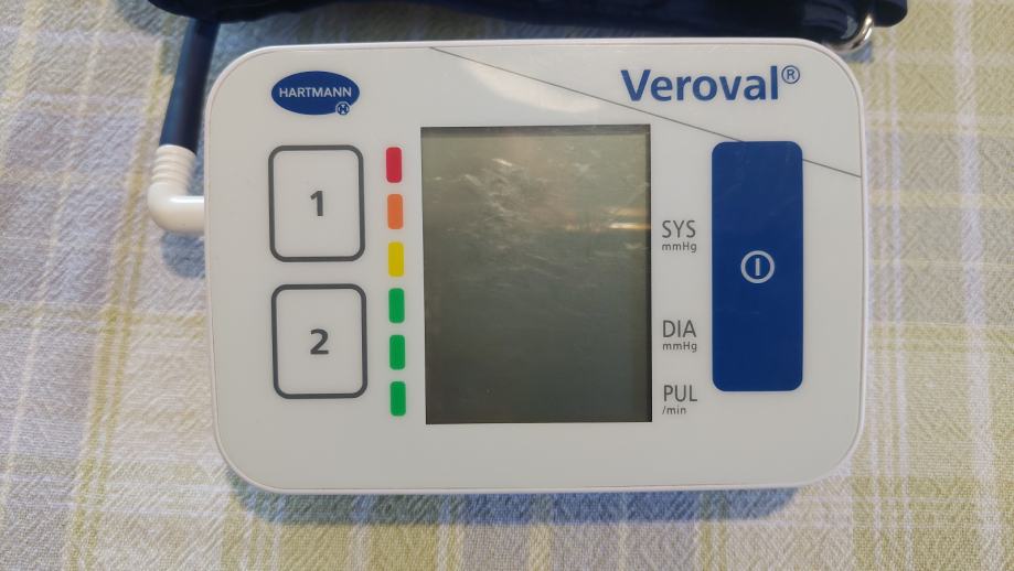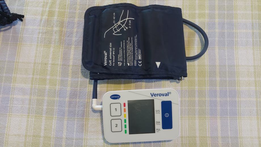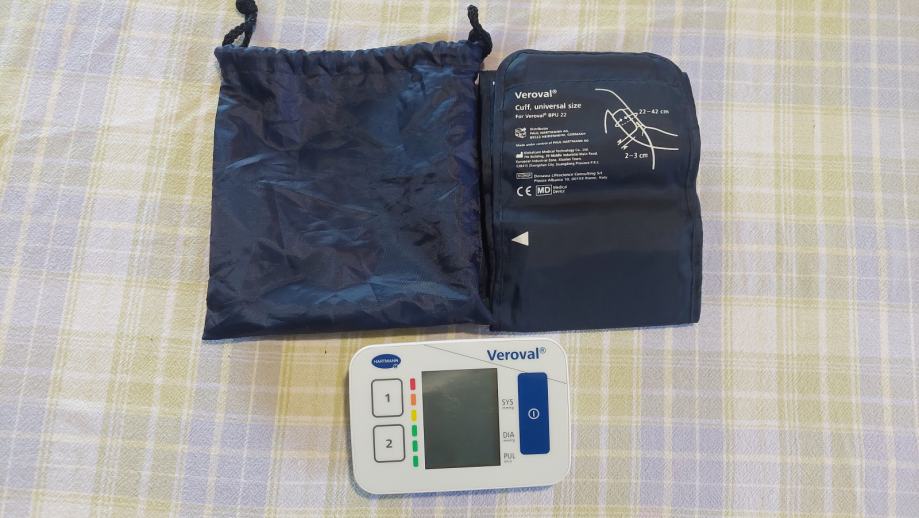 Automatski tlakomjer Hartmann Veroval BPU22, mjeri na nadlaktici. Potpuno ispravan i uščuvan. Jednostavan za upotrebu, velki zaslon i velike tipke. Dvije memorije. Torbica za nošenje i spremanje.