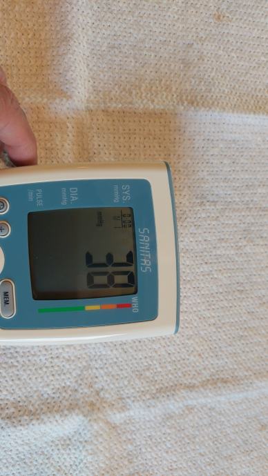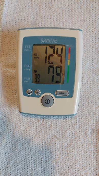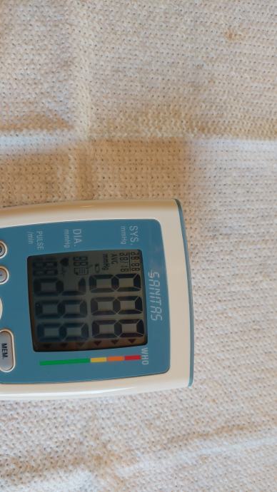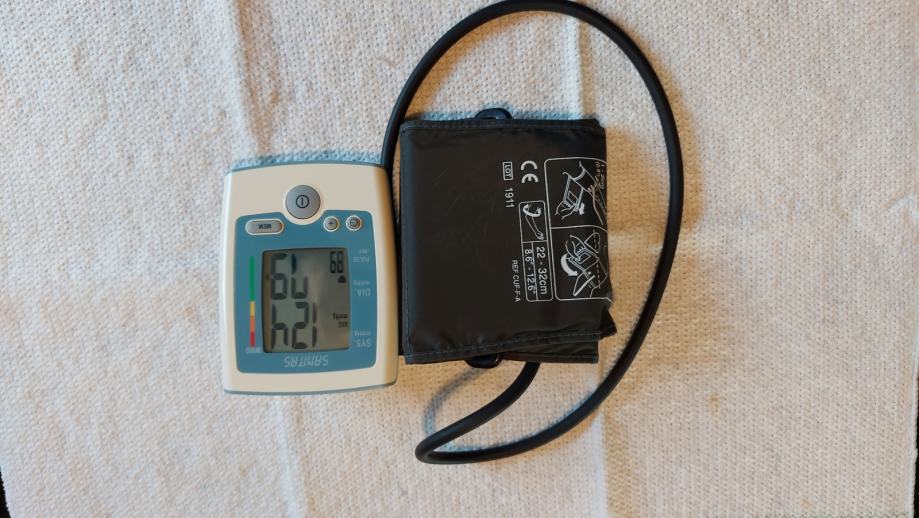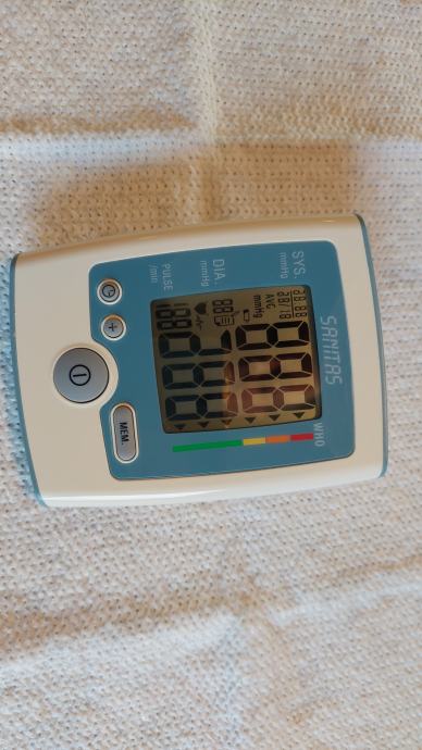 Automtski tlakomjer Sanitas SBM 30 - mjeri na nadlaktici. Proizveden u Njemačkoj. Potpuno ispravan, izuzetno uščuvan, malo korišten, bez tragova korištenja. Velike brojke i gumbi. Izuzetno jednostavno korištenje. Dvije memorije mjerenja. Upute i torbica za spremanje i nošenje.