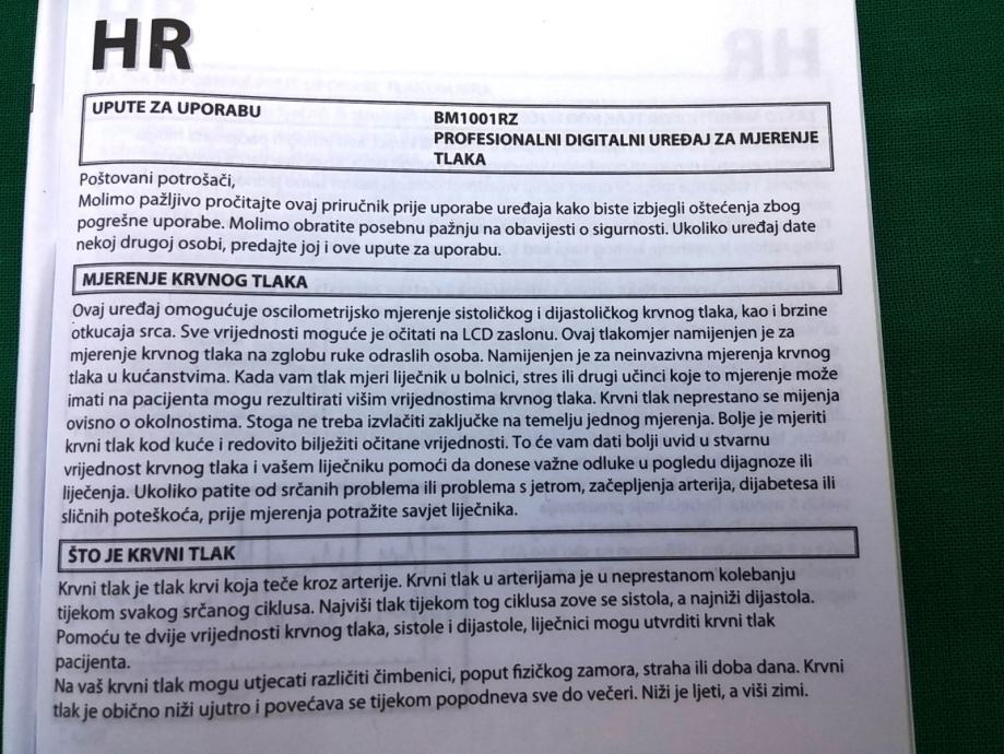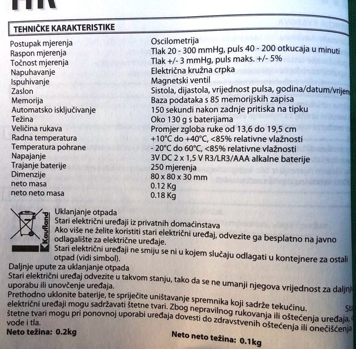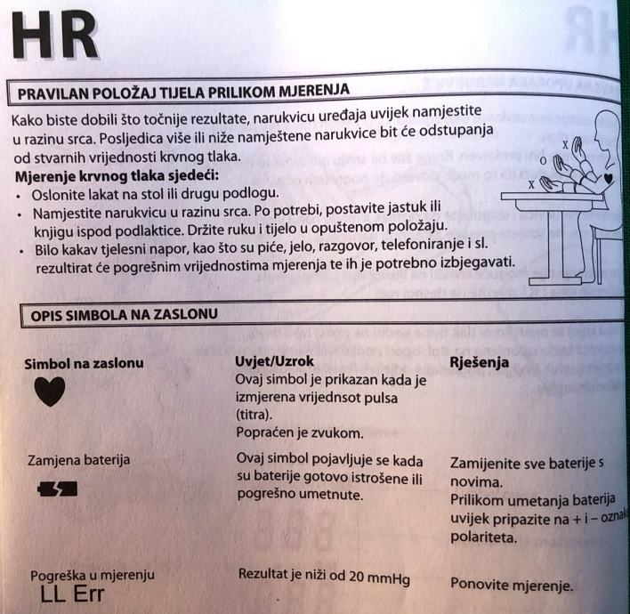 - mjeri krvni tlak i puls, radi na dvije AAA-baterije (1.5 V, preporuka: koristite punjive baterije)
