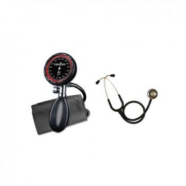 Klasičan tlakomjer s manometrom renomiranog švicarskog proizvođača tlakomjera Rossmax. Mjerenja krvnog tlaka izmjerena ovim tlakomjerom za kućnu uporabu jednaka su mjerenjima koja vrši tehničar uz pomoć auskultativne metode manžeta/stetoskop.