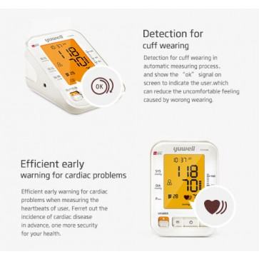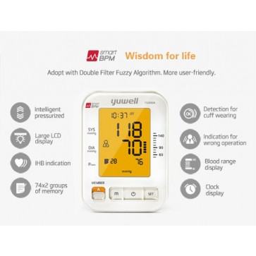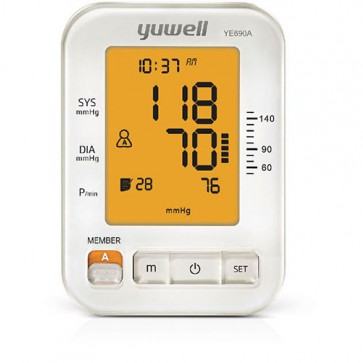 Yuwell YE690A tlakomjer ima veliki LCD ekran koji olakšava čitanje starijim osobama i onima sa slabijim vidom. Jednostavna obrada podataka pritiskom na gumb memorije kojim možete očitati prosjek zadnja tri mjerenja. Za vrijeme napuhivanja manžete DFFA algoritam za obradu podataka procjenjuje prikadan pritisak za različite korisnike kako ne bi stvarao nelagodu zbog pretjeranog stiska manžete i poboljšao rezultate mjerenja. Yuwell YE690A tlakomjer pri mjerenju detektira aritmije ukoliko se one događaju.