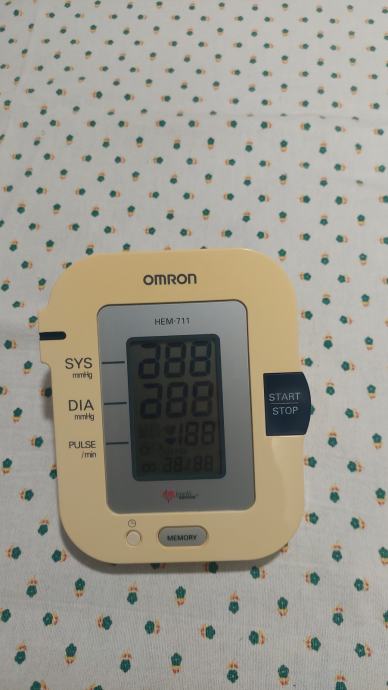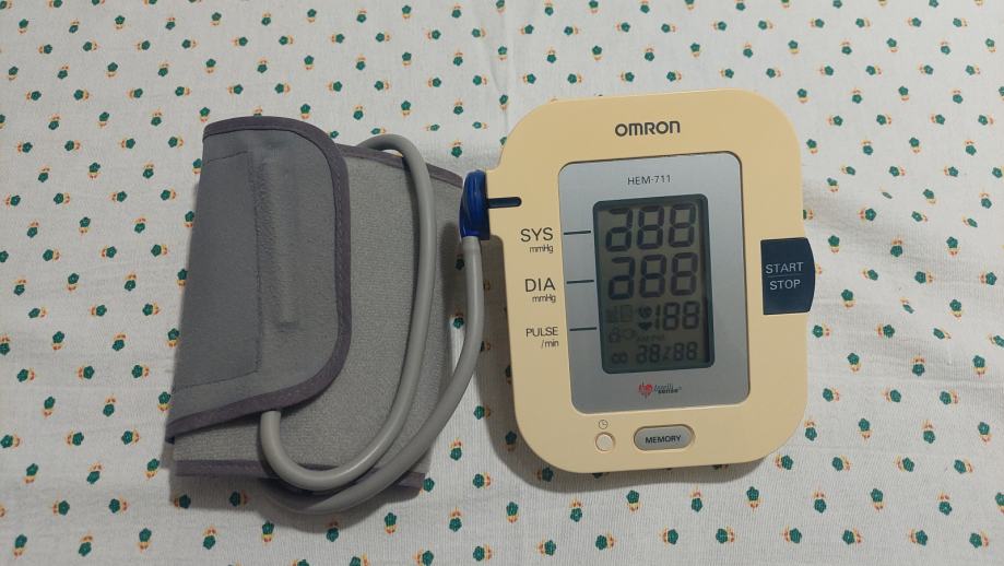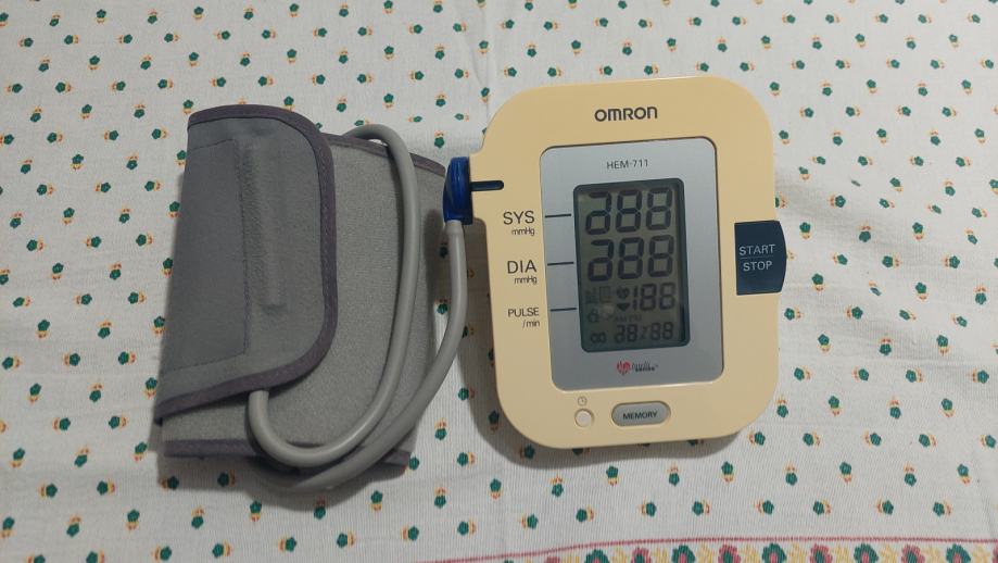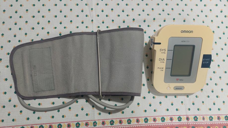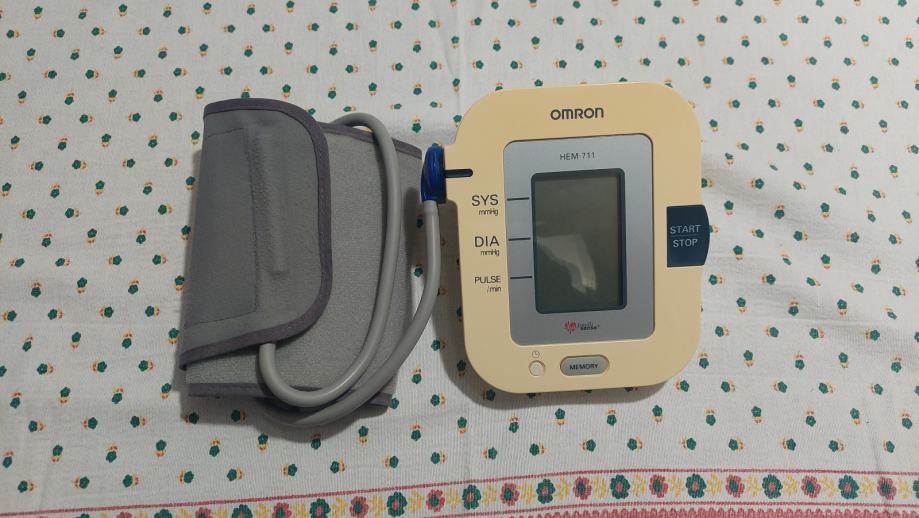 Tlakomjer Omron HEM 711. Ispravan, uščuvan, jednostavan za upotrebu. Upute i torbica za spremanje i nošenje.
