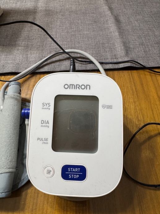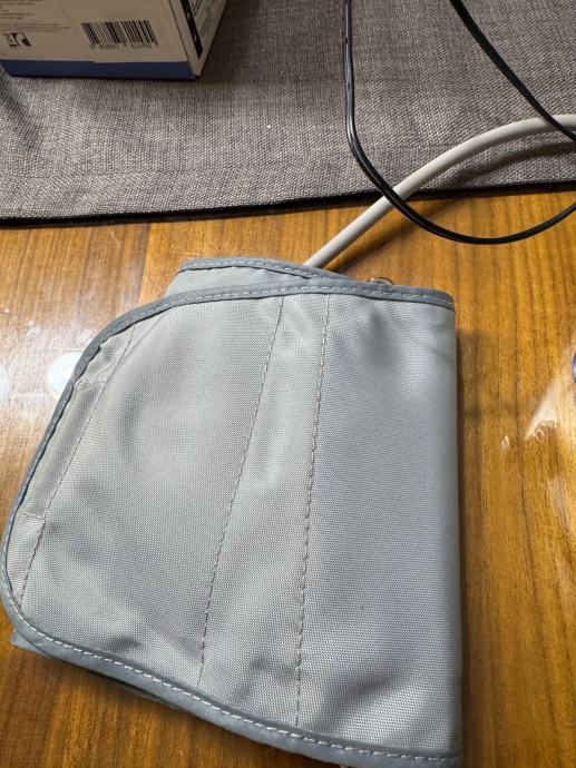 Tlakomjer je korišten 6 mjeseci, povremeno. Potpuno je ispravan i odlično očuvan. Uz tlakomjer dolazi adapter i upute za korištenje. Tlakomjer pamti rezultate 30 zadnjih mjerenja tlaka za 1 osobu.