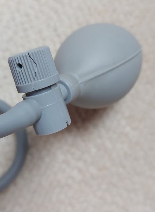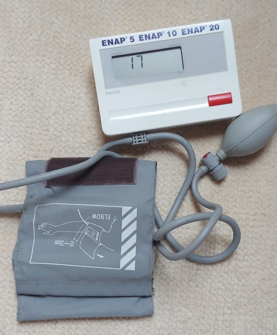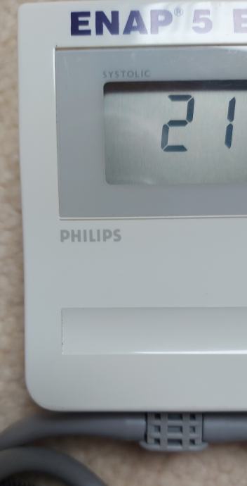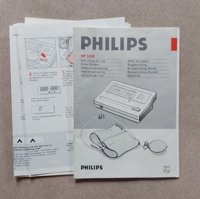 Tlakomjer Philips, potpuno ispravan, ali ima oštećenje u vidu puknuća kotačića na ventilu kod pumpice (prikazano na zadnje dvije fotografije). Ako netko ima ispravni ventil od pumpice vrlo lako je to zamijeniti.