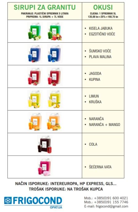 U stalnoj ponudi imamo 12 okusa pripravaka za granitu