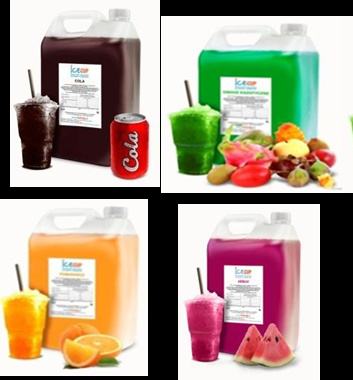 Okusi: naranča, cola, kiwi(zeleni) limun(žuti) ,višnja i šumsko voće(plavi sirup), jagoda(crveni)
