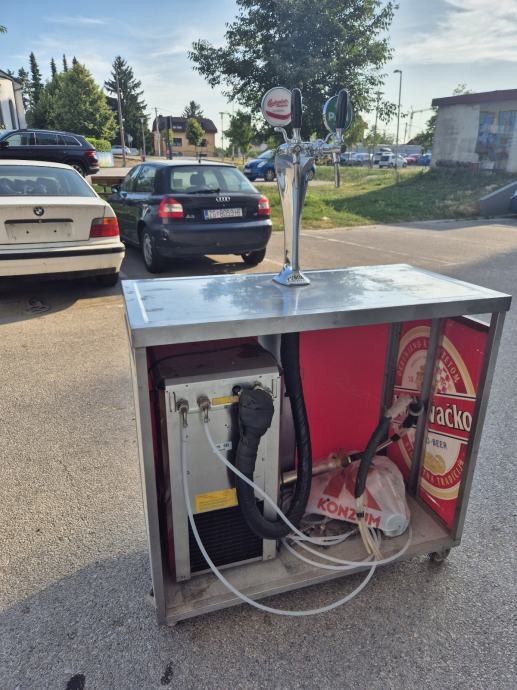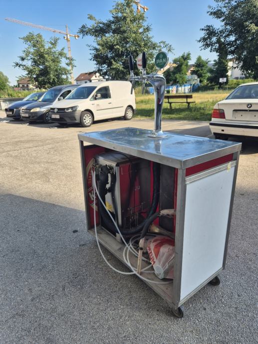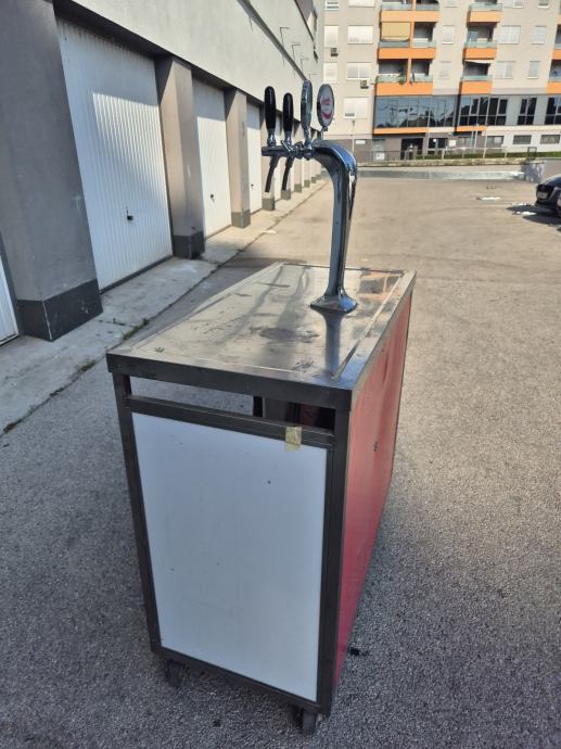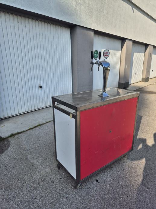 Točionik dupli,Inox pult na kotacima, sa nekoristenim rasladnim aparatom za tocenje
