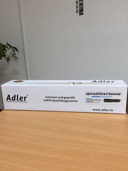 Prodaje se tvornički zapakirani Adler CYAN zamjenski toner CE311A/CF351A-C kompatabilan sa HP Color LaserJet CP1025, CP1025n, CP1025nw, TopShot LJ Pro M275nw, M175a, M175nw, laserjet M176n/nw i M177fn/fw pisačima.