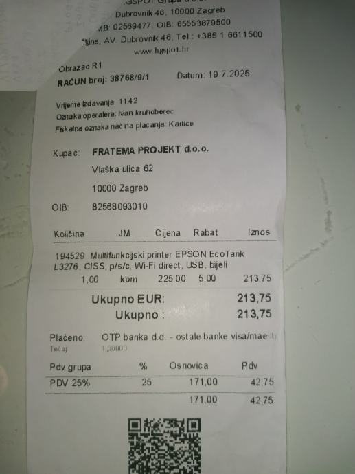 Printer kupljen u 7 mjesecu, slabo korišten, prilažem račun koliko je plaćen, jer vrijedi garancija još. Prodajem u pola cijene