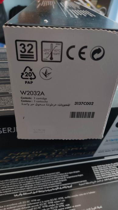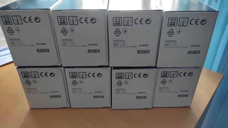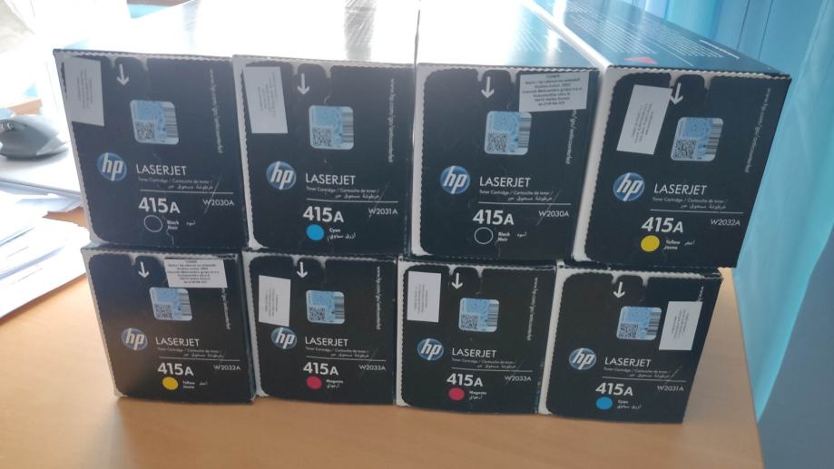 HP toner cartridge 415A, za laserske printere, novo, original zapakirano. Ostalo od printera koji se više ne koristi. Imam 2 seta, jedan set za 2000kn ili 265 eura. Kapacitet 2400 stranica.