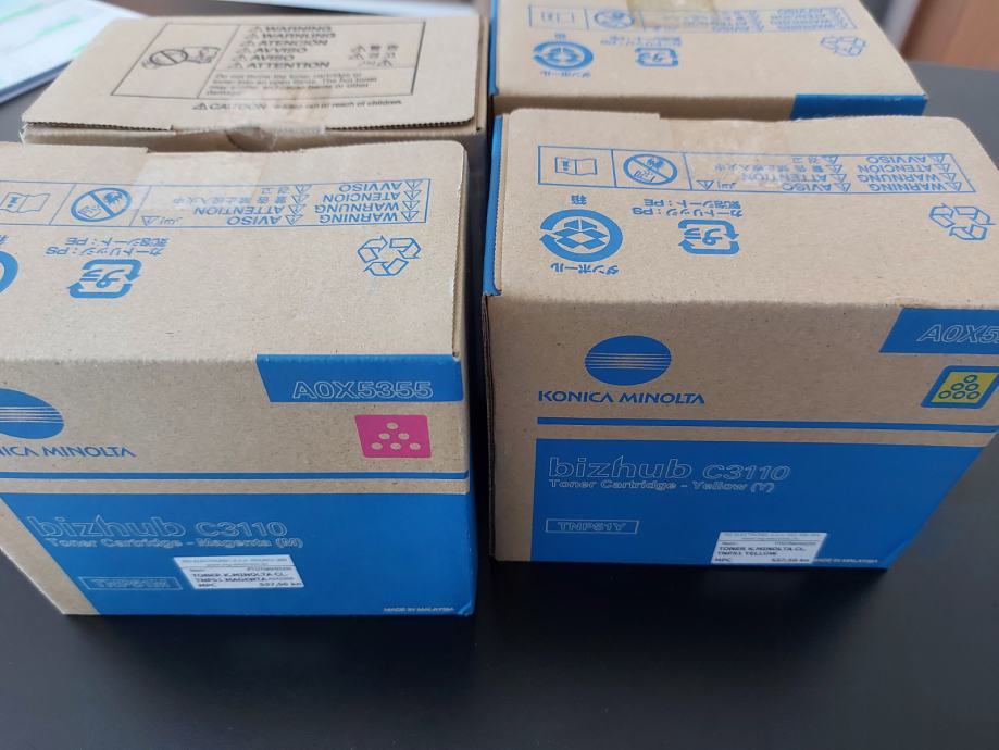 Set tonera - Black, Cyan, Magenta i Yellow po 1kom. Za Konica Minolta bizhub C3110. Novi, zapakirani.