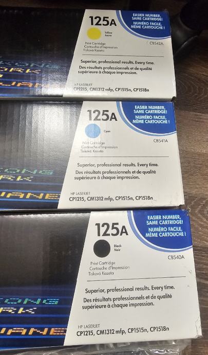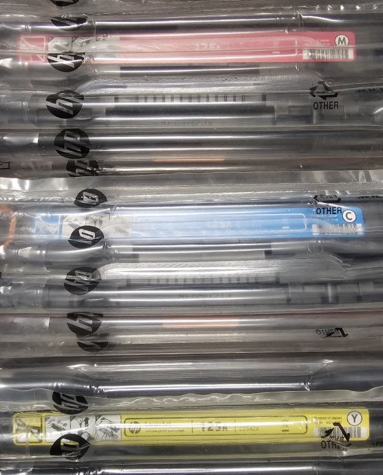 3 tonera je neotvoreno u kutiji, a 3 tonera u zračnom omotu ali nekorišteni.