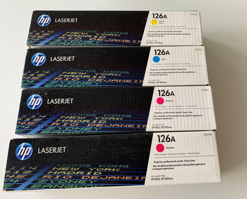 Prodajem originalne tonere za laserski printer HP LASERJET PRO CE312A/CE311A/CE313A - žuti, cyan i magenta. 65 EUR/kom