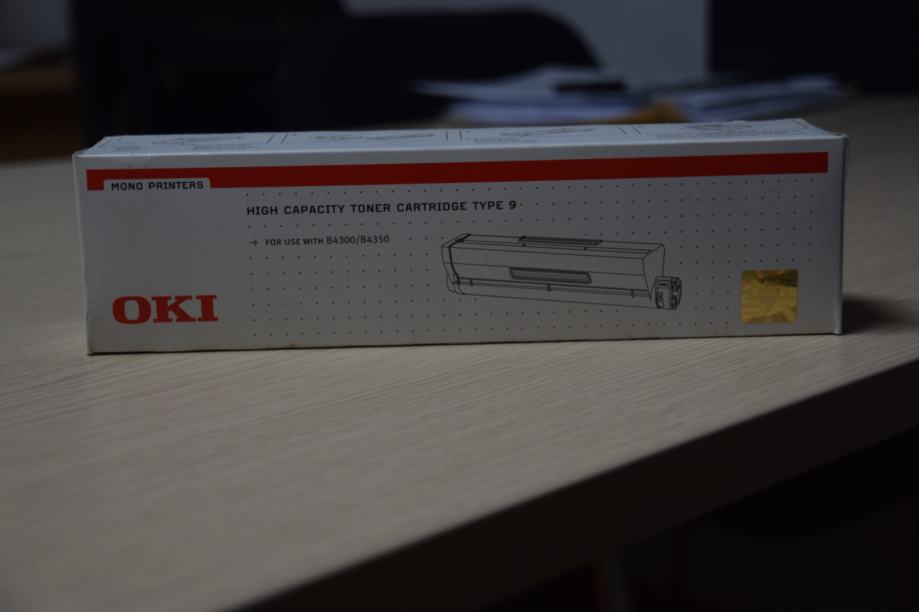 Prodajem originalni OKI-jev toner Type 9 za pisače serije B4300/B4350. Pisač ne radi više, toner ostao neotvoren, novi.