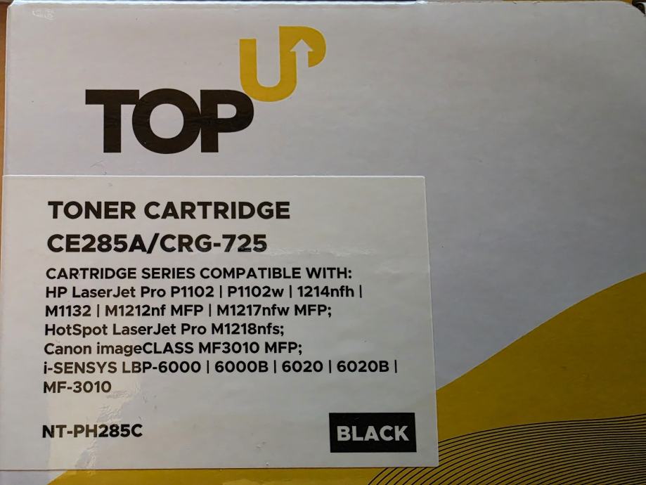 Prodajem pet potpuno novih zamjenskih tonera CE285A, TOP kvalitete, crne boje za laserske printere. Kompatibilan je s HP LaserJet Pro P1102, P1102w, M1212nf MFP i M1217nfw MFP, Canon LBP3010, Canon LBP3250, Canon i-Sensys LBP6000, Canon LBP3100, Canon i-Sensys LBP6000B, Canon LBP3108, Canon LBP3100B, Canon LBP6020, Canon LBP6020B, Canon LBP6030B i drugim modelima navedenim na pakiranju. Toneri su zapakirani u originalnoj kutiji, spremani za korištenje.