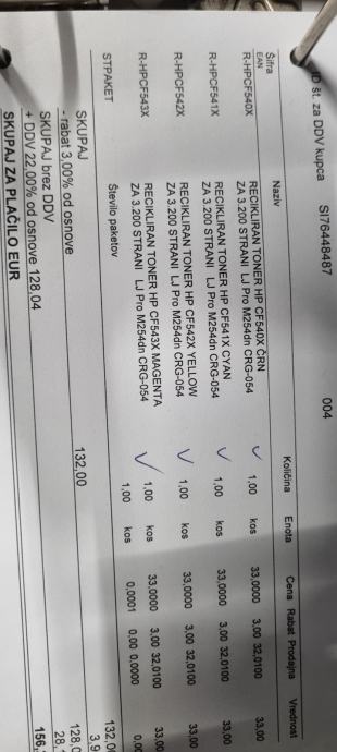 Zamjenski toneri za HP LaserJet pro 20 eura po komadu.