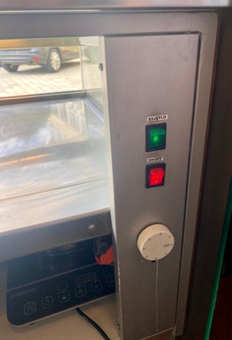 Prodaje se ispravna topla vitrina nalazi se u Korčuli. Lijevo staklo je puklo drugo sve ispravno i ocuvano.