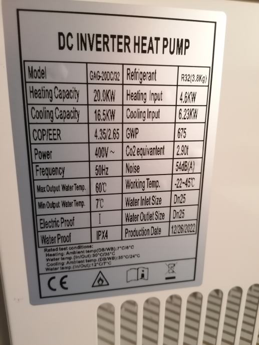 Prodam novu inverter toplinsku pumpu za grijanje, Razlicne snage od 12kw do 150kw(kompresor Mitsubishi, Panasonic, Copeland ), r32, wifi, wilo cirkulaciska pumpa, cop3,9, radi do -25. monoblok sistem.