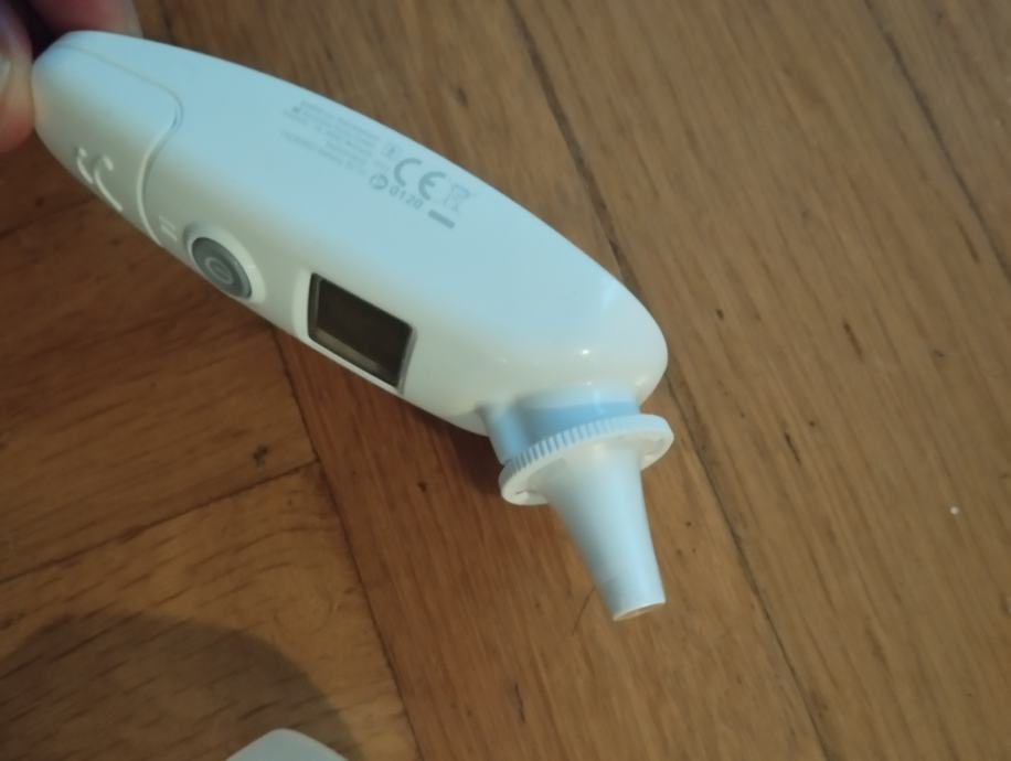 Kao nov, malo korišten. Uz toplomjer dolazi i 40 nastavaka za uho.