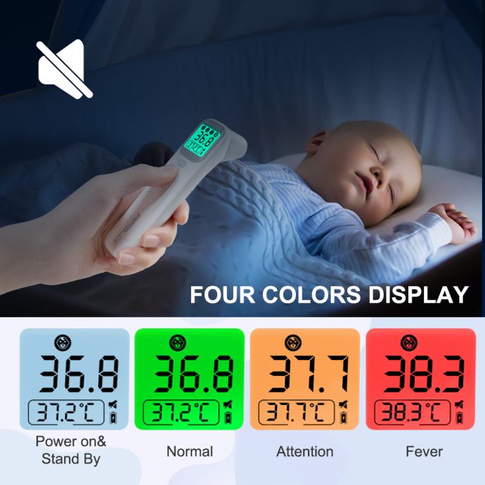 Mjerenje temperature toplomjerom može biti tako jednostavno bez buđenja vaše bebe, bez zvučnog signala kada je isključen zvuk, a LCD s pozadinskim osvjetljenjem omogućuje jasno očitavanje čak i u mraku.