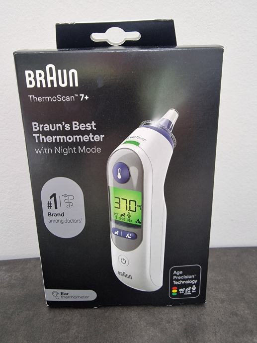 Braun IRT 6525 ThermoScan 7+ ušni toplomjer za mjerenje tjelesne temperature u uhu, sa noćnim svjetlom. Age precision funkcija.
