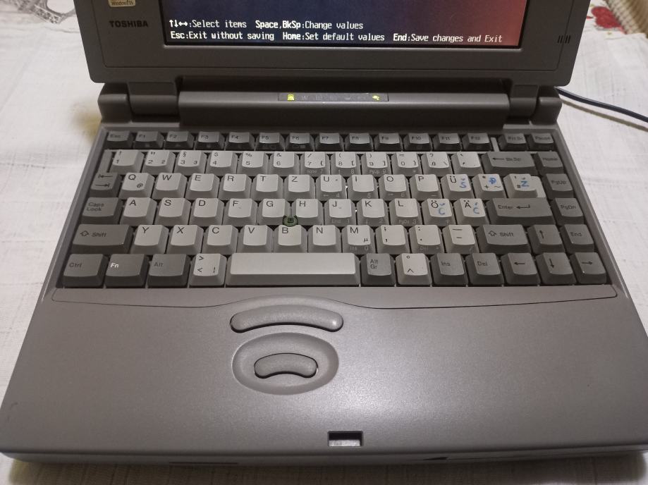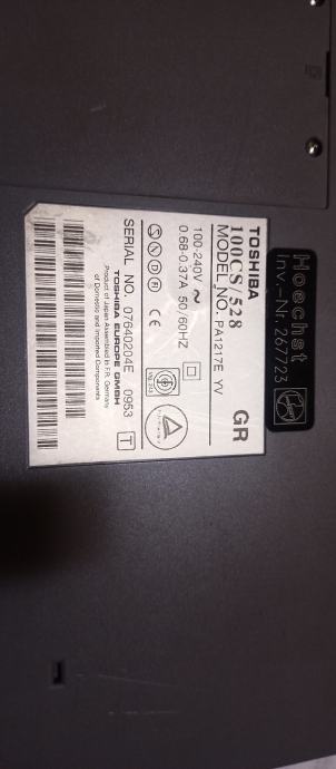 Laptop TOSHIBA 100CS/528, 1995 g. MODEL NO.PA1217E YV, Product of Japan Assembled in F.R.Germany of Domestic and Imported Components.