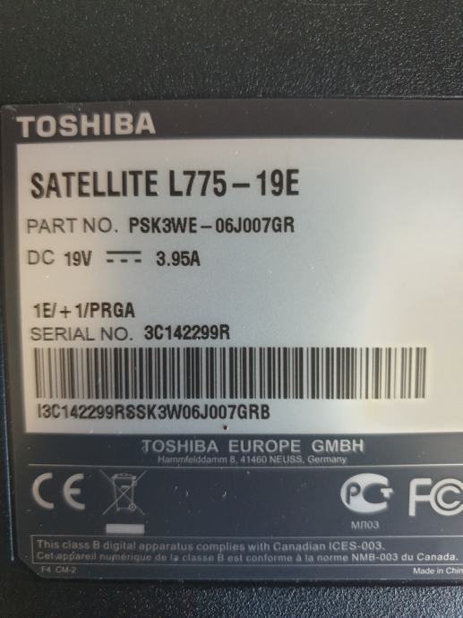 Prodajem Laptop Toshiba L775-19e, kompletnog ili u dijelovima