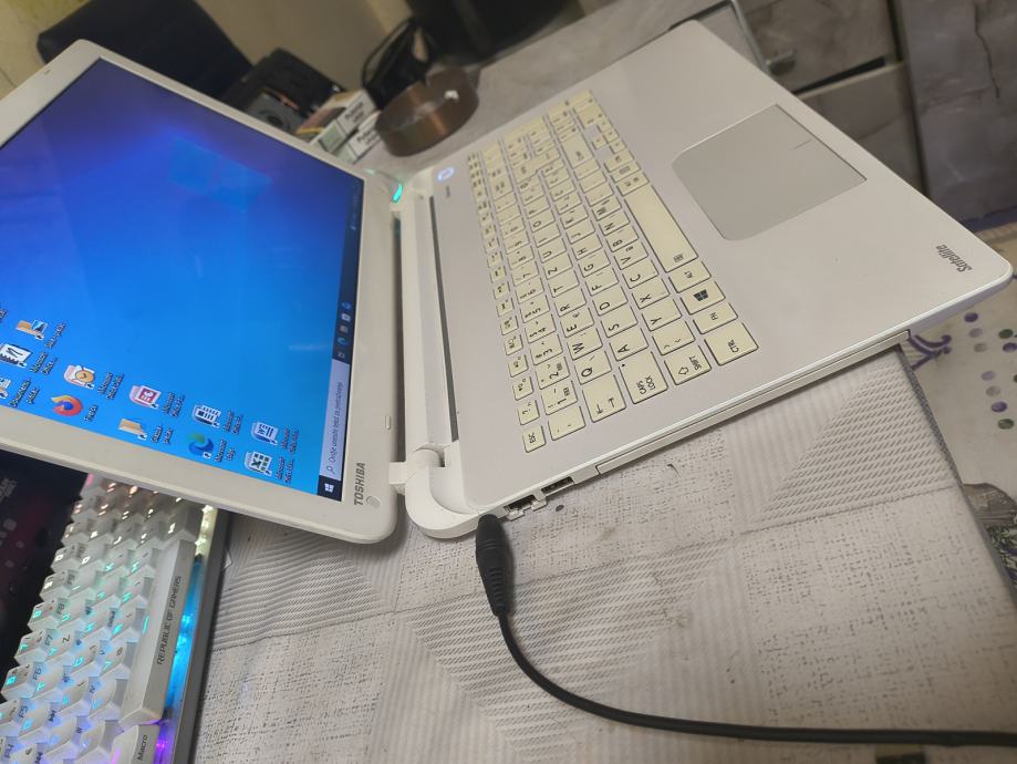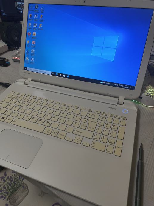 Toshiba kvalitetniji i jako ljepi laptop, tanak, lakirano bijele boje, serije c850, slike su njegove upravo slikane, laptop bez greske za Face, online filmove i slicno ( nije gaming od 1000e ), ima ssd 128gb od Samsunga, intel procesor 4 x 2,4ghz, ne grije se ( promijenjena termalna pasta Arctic ), ima hdmi,kameru,wifi,bt,mikrofon...