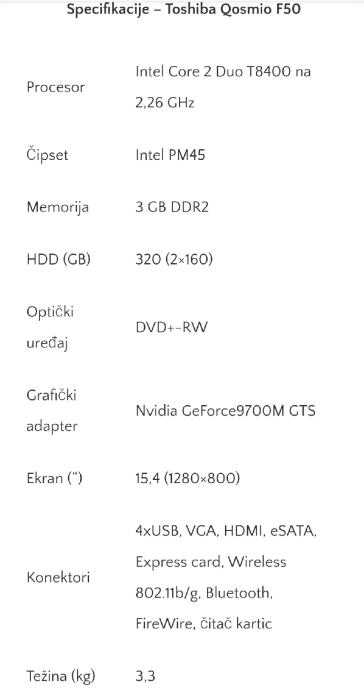Ispravan i očuvan. Zamijenjen ekran i proširen HDD.