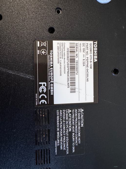 Prodajem laptop marke toshiba. Model je quosmio x70-b-10m. Unutra je i7 4710hq procesor sa 4 jezgre i 8 threadova. Ram od 2x4gb je ukljucen i nalazi se u laptopu. Takoder ima amd r9 265x graficku karticu. Laptop se pali na punjacu i posta u bios. Nije detaljno testiran. Zbog par stvari sto fale oznacen je kao "neispravno". Fali cd caddy, baterija, hard disk, punjac. Ekran je u odlicnom stanju. Cijena je 120€ fiksno.