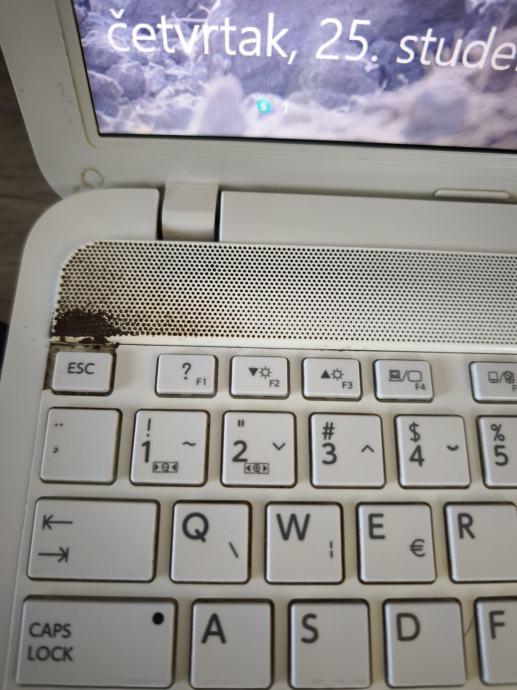 Laptop je u dobrom stanju s malim oštećenjima na kućištu. Sve komponente su izvorne i sve je funkcionalno osim uređaja za pokretanje CD i DVD diskova. Također baterija je dosta slaba izvan punjača, iako radni do sat vremena bez punjača.