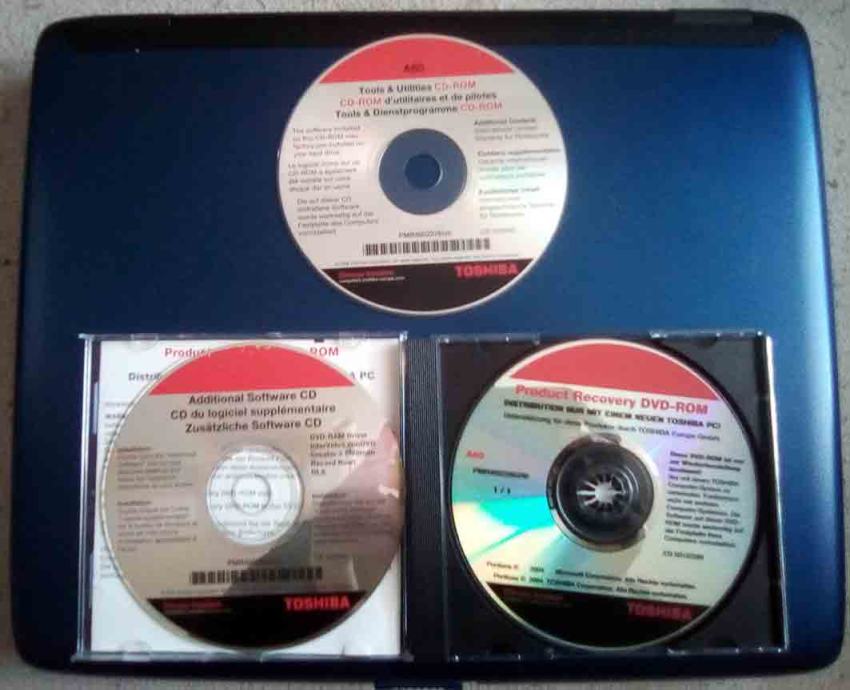 Uz laptop dolaze original korisničke upute, original Toshiba instalacijski programi za Win XP.
