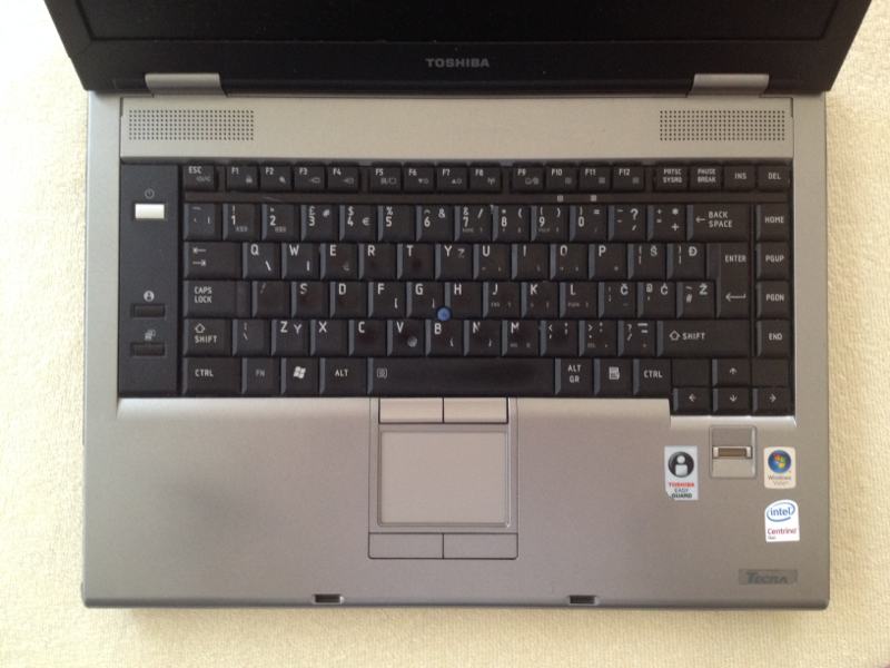 Laptop je služio kao službeni, sada stoji u kutu i ne koristi se. Laptop je star oko 6 godina. Napravljen je downgrade sa Windows Vista na XP Pro jer je Vista loša. Radi brzo i zadovoljit će potrebe pisanja na njemu i surfanja po netu. Potpuno funkcionalan, baterija je slaba, ima tragove korištenja i jednu malu pukotinu koja je dokumentirana u fotografijama. Detaljno sve o laptopu možete naći na: