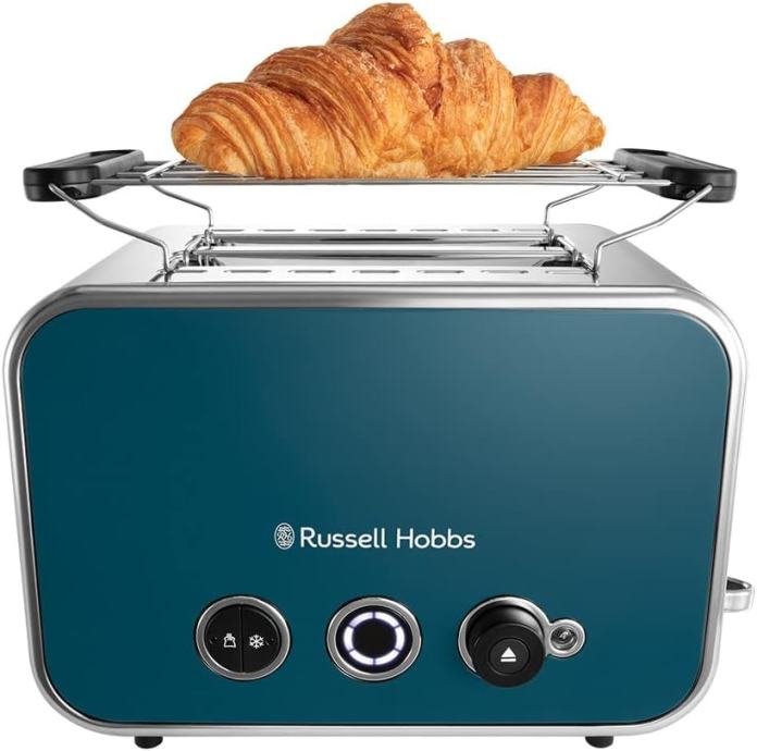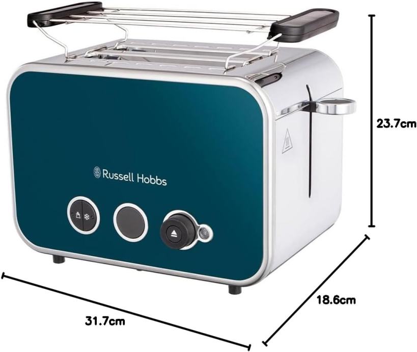 Kakav tost volite ujutro? Atraktivan izgled na kuhinjskoj radnoj površini i praktična funkcionalnost spajaju se u tosteru Russell Hobbs Ocean Blue Distinctions 2-slice. Svojim zadivljujućim dizajnom, zajamčeno će ostaviti dojam u vašoj kuhinji. Karakteristike uključuju kotačić za podešavanje stupnja pečenosti za dobivanje savršene boje vašeg tosta, duži utori za ravnomjerno pečenje većih kriški, provjera statusa pečenja podizanjem rešetke tijekom pečenja, rešetka za podgrijavanje peciva, kako bi vaše poslastice bile tople i LED kotačić koji odbrojava preostalo vrijeme pečenja. S toliko stila i sadržaja u jednom uređaju, toster Distinctions 2-slice se zaista može praviti važnim u vašoj kuhinji.