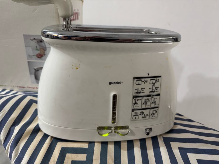 Prodajem toster marke Guzzini u bijeloj boji s kromiranim detaljima. Radi se o dvostrukom tosteru kompaktnog dizajna s regulacijom stupnja tostiranja. Dolazi s originalnom kutijom.