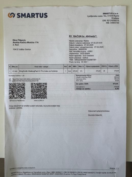 Cijena novog u trenutku kupovine je bila 479,00 (što ću vam dostaviti i u računu).