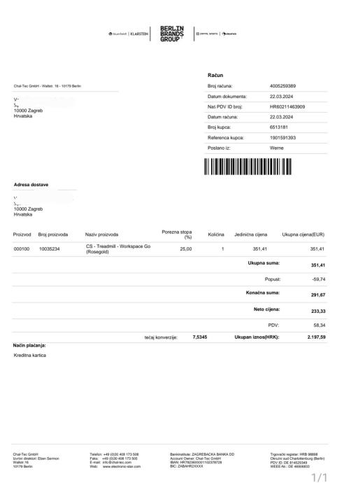 Kupljena: 22.03.2024. (posjedujem račun koji prilažem uz traku).